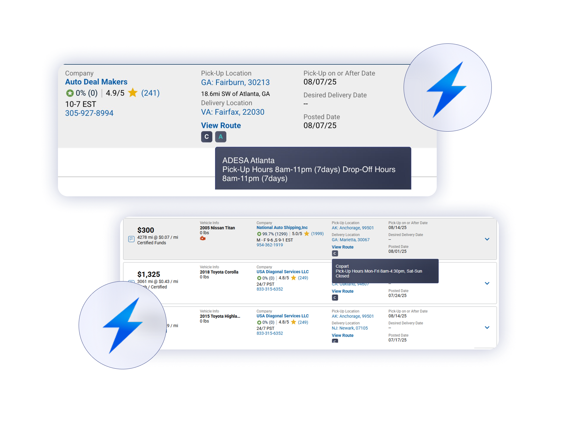 Instantly identify loads from popular auctions like Manheim, Copart, IAA, and Adesa — all marked directly on the page.
